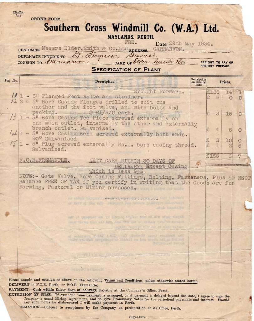 Following the end of the war he was granted an allocation of land through the Soldiers Settlement Scheme. At this time the north side of the Gascoyne river was still mostly unallocated Crown Land. The early development of the agricultural blocks was encouraged through the Soldiers Settlement Scheme and subsequently Dr Fergusson-Stewart was allocated Lots 146 and 147 for his service to King and Country.