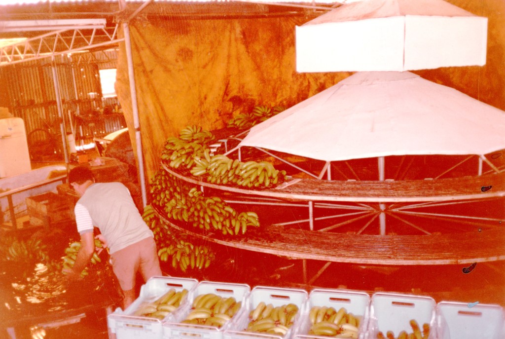 The following year in 1980, they continued to expand production and improve efficiency. The packing shed improvements included two water troughs to wash the bananas hands. These were completed in July and October respectively and a revolving packing bench completed in September. A further acre of bananas were planted, more avocados and a second acre of bananas on the northern side of property.