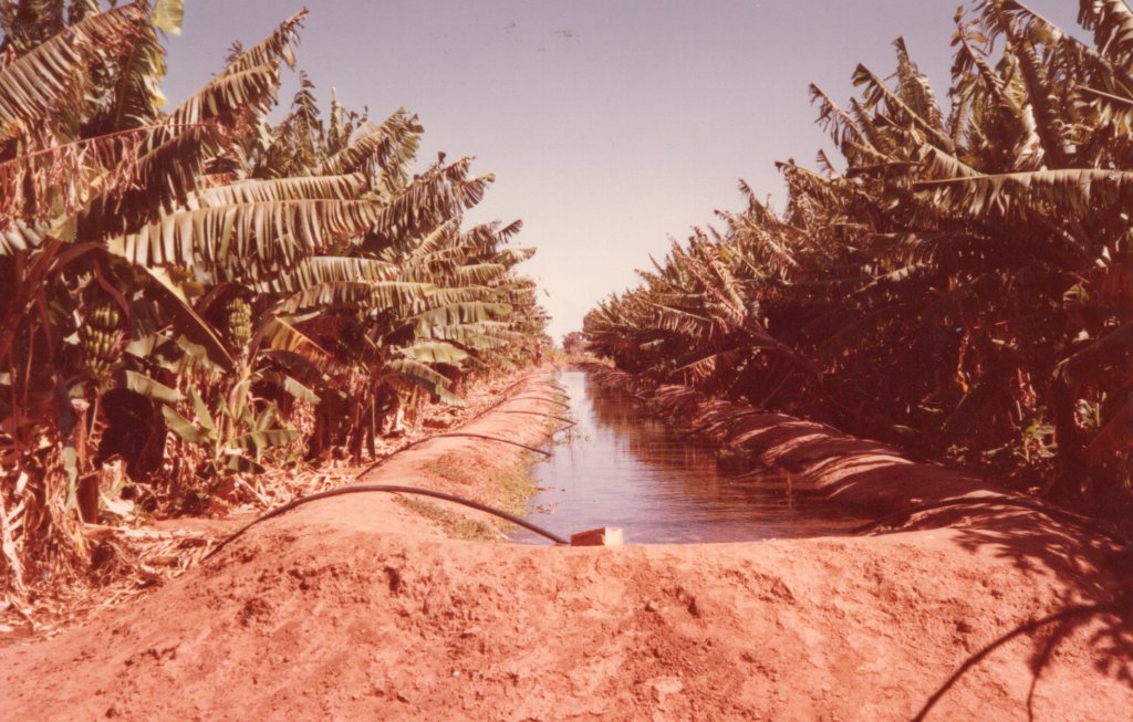 Continuing the diversification initiatives they trialed a new approach to irrigate the bananas furthest from the water source by irrigating with dams and syphons. Three dams were built on the northern end, furthest away from the river. While the cost of pumping water was reduced, the evaporation of water from the dams negated any benefit. They continued with flooding method until plantations started to adopt the sprinkler system.